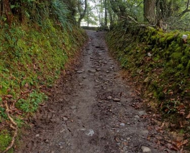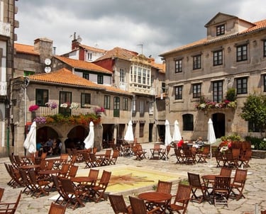 El Camino Portugués desde Pontevedra comienza cruzando el histórico Puente del Burgo y pronto se adentra en caminos rurales que serpentean entre frondosos bosques y pequeñas aldeas, ofreciendo un contraste revitalizante con el entorno urbano de la ciudad. Este tramo es especialmente agradable por su terreno suave y sombreado, destacando la aldea de Santa María de Alba, un lugar pintoresco con paisajes pastorales y una iglesia románica que invitan a la contemplación.